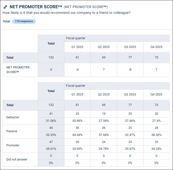 Finally, in your modern report you add a banner based on the Fiscal quarter question to view the NPS® results broken out by quarter.
