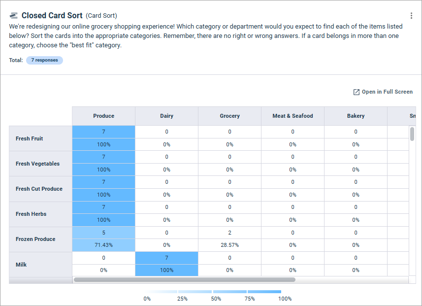 as responses are coming in. Modern reporting allows you to analyze Card Sort