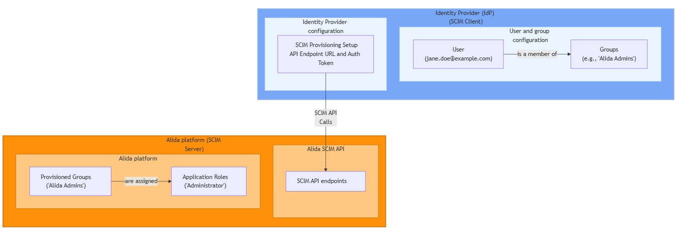 - SCIM Server: The Alida endpoint that receives and processes provisioning requests.