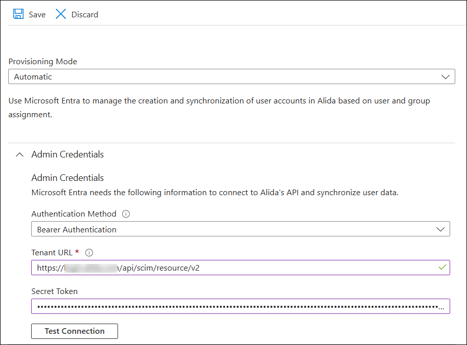 - Token: The API token for authentication with the Alida SCIM API endpoints.