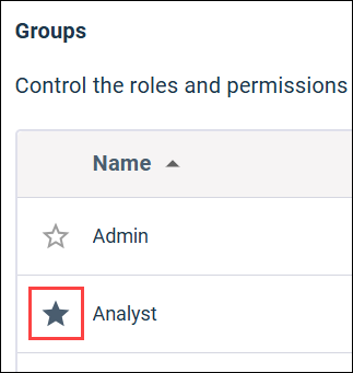 The group you set as the default group should be the group you have defined with the least privileges. For example, if you are an Analytics customer assigning a group with the Dashboard Viewer role, users provisioned to this group are restricted to viewing dashboards.