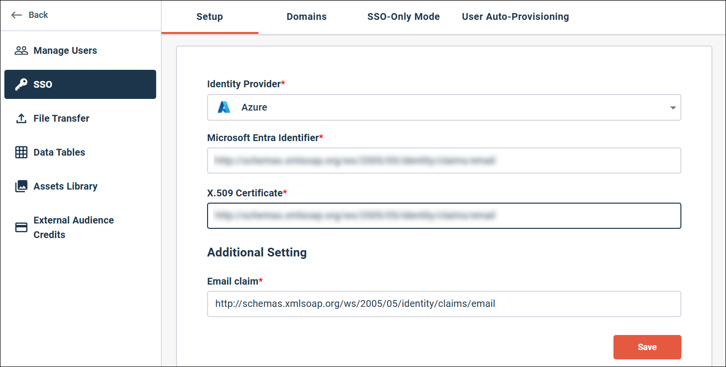 Enter the Azure configuration values into Alida's SSO Setup page.