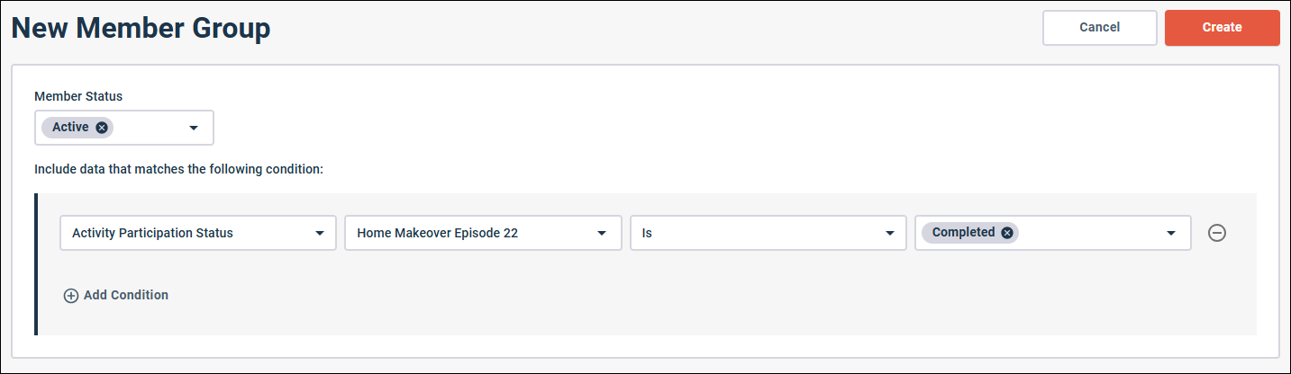 Create a member group by finding community members who meet certain criteria. You can then use the member group as a template when filtering the community to find members to invite to activities.
